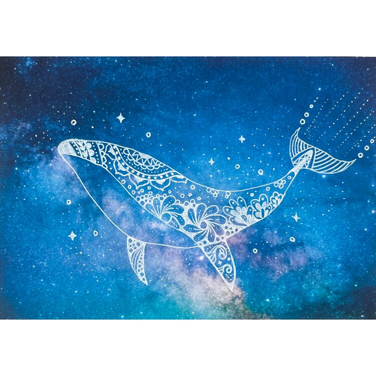 宇宙に浮かぶヒーリングアート クジラ